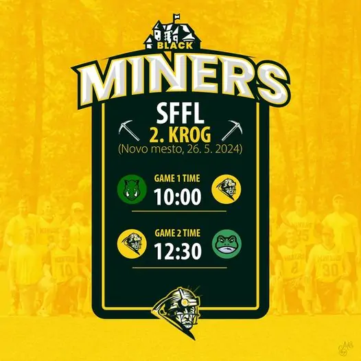 Jutri, v nedeljo, 26. 5., se rudarji odpravljamo v Novo mesto na drugi turnir Slovenska Flag Football Liga. Čakata nas dve vse prej kot lahki tekmi. Ob 10:00 se bomo rudarji pomerili z ekipo LAZAR Wild Hogs Kocevje, ob 12:30 pa sledi še tekma proti Ljubljana Frogs.