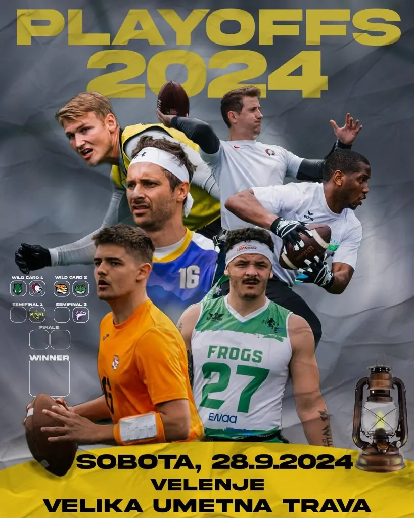 Zadnje tekme sezone bomo igrali v soboto, 28. 9. 2024, na veliki umetni travi v Velenju. Vse skupaj se začne ob 13:00 z napetima wild card tekmama, na katerih se bodo štiri ekipe spopadle za zadnji dve mesti v polfinalu. Zmagovalca teh tekem napredujeta, višje rangirana ekipa (po rednem delu) pa bo naš nasprotnik v polfinalu, ki je na sporedu ob 14:15.
