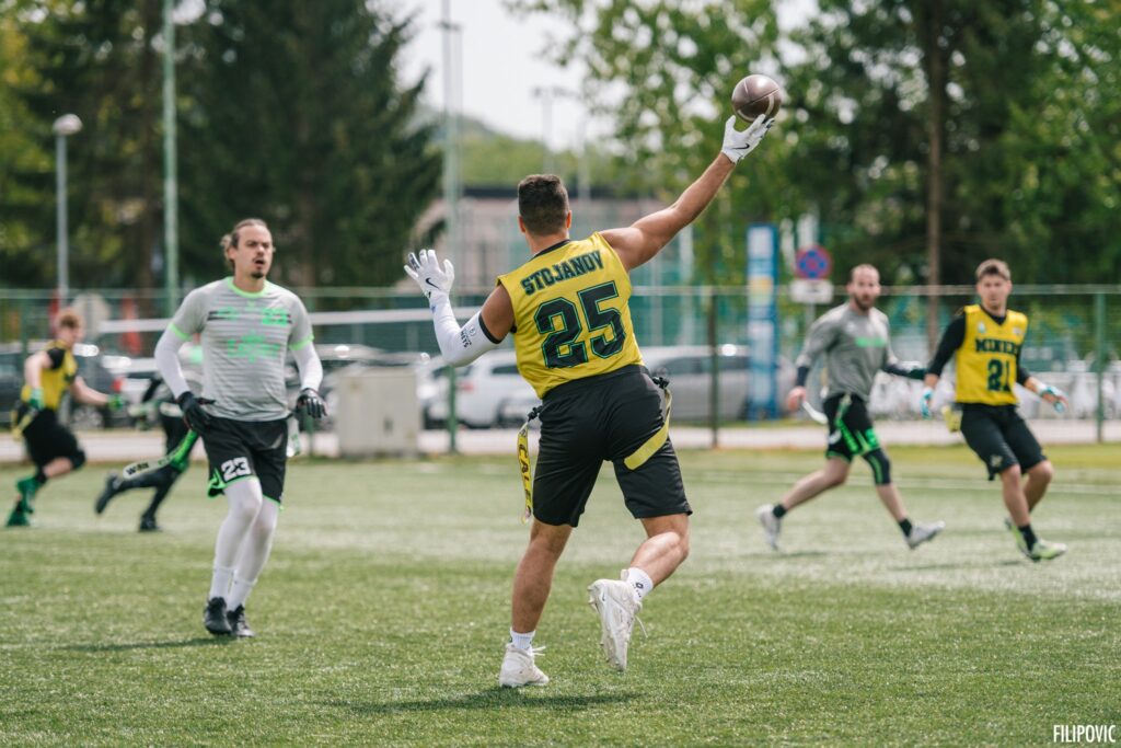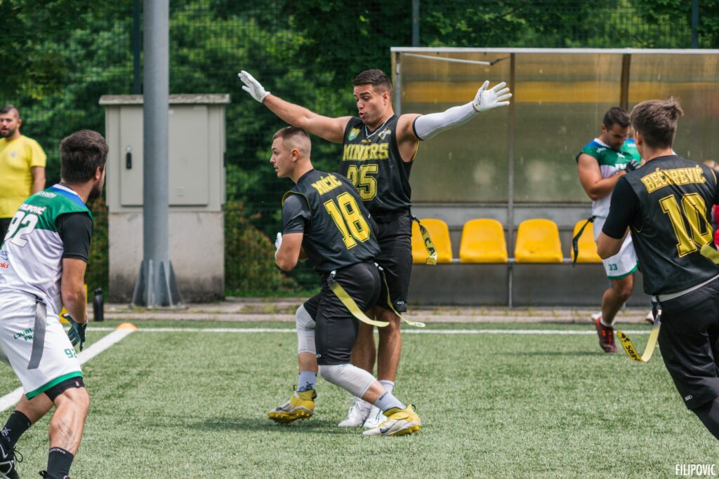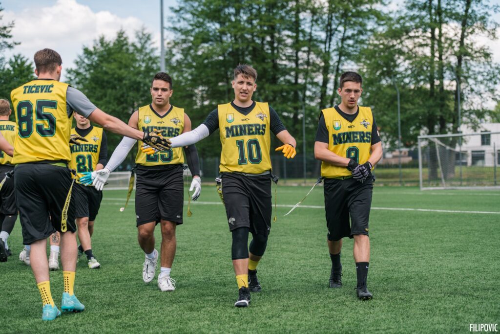 ADRIA BOWL III 2024 Minuli vikend smo se rudarji odpravili na enega izmed največjih mednarodnih turnirjev v Evropi, v največji izvedbi doslej, na katerem je sodelovalo kar 50 ekip. Med izjemno kvalitetno konkurenco smo osvojili solidno 9. mesto v elitni diviziji. V skupinskem delu smo se pomerili z ekipami Zagreb Patriots, Badener Greifs in Amsterdam Unity. Po izjemno dominantni uvodni tekmi in visoko zmago proti Zagrebu, smo v drugo tekmo vstopili sproščeno in še v prvem polčasu prišli do vodstva z dvema touchdownoma razlike. To je trenerjema dopustilo, da v igro pošljejo tudi nove igralce, da naberejo izkušnje z igranjem na najvišji ravni. Na koncu smo tudi tekmo z Nemci mirno pripeljali do konca ter vknjižili še drugo zmago v skupini in s tem utrdili prvo mesto v skupini. V tretji in zadnji tekmi te skupine smo se pomerili z ekipo Amsterdam Unity, ki so z našega vidika bili neznanka v taktičnem ter igralnem smislu. Začeli smo dobro, tekmo večino časa držali pod kontrolo, na koncu pa smo z izgubljeno žogo in prejetim touchdownom v zadnjih sekundah tekmo izgubili. Poraz smo temeljito analizirali ter se že začeli pripravljati na izločilne boje, kjer nam je žreb v osmini finala namenil še eno nizozemsko ekipo, tokrat Amsterdam Panthuers. Žal smo tudi tokrat morali priznati premoč boljši ekipi. V razvrstitvenih tekmah smo nato najprej visoko ugnali ekipo Mamutov iz Garrose ter turnir končali še z zmago proti visoko opevani ekipi Munich Spatzen za končno 9. mesto. S to uvrstitvijo smo končali turnir kot druga najuspešnejša slovenska ekipa za prvaki Kranjski Jazbeci, ki jim še enkrat iskreno čestitamo! SKUPINSKI DEL: Velenje Black Miners 35:12 Zagreb Patriots Velenje Black Miners 36:33 Badener Greifs Velenje Black Miners 26:33 Amsterdam Unity ROUND OF 16: Velenje Black Miners 7:32 Amsterdam Panthers PLACEMENT MATCH 9-12: Velenje Black Miners 27:7 Mamuts Garrosa PLACEMENT MATCH 9-10: Velenje Black Miners 19:14 Munich Spatzen Čestitamo vsem našim igralcem za borbenost in vztrajnost na tako zahtevnem turnirju! Kljub izzivom smo pokazali svojo moč, vzdržljivost in srčnost na igrišču, kar nas dela zares ponosne. Zdaj se z enim samim ciljem vračamo domov – še naprej graditi in izboljševati našo igro, da bomo še močnejši in pripravljeni na naslednje izzive, ki nas čakajo.